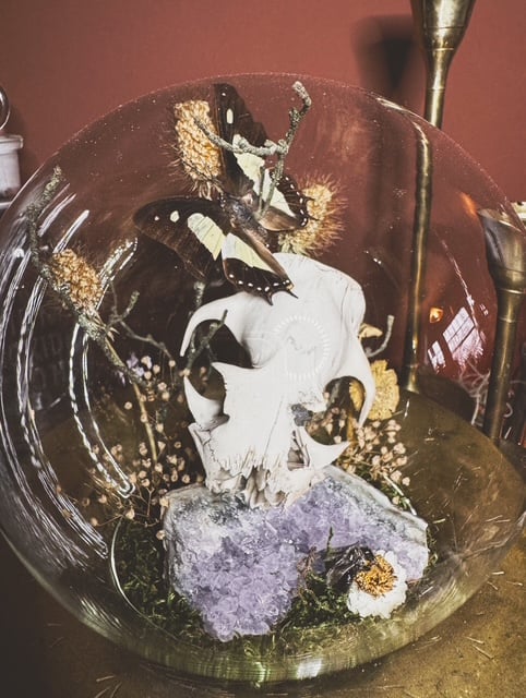 Finding this groundhog skull was such a delight. There were no apparent signs around that would have led me to believe he was even there. With the little metal bb still embedded in his tiny skull still there, I knew i was bringing him home & making him his own beautiful tribute.